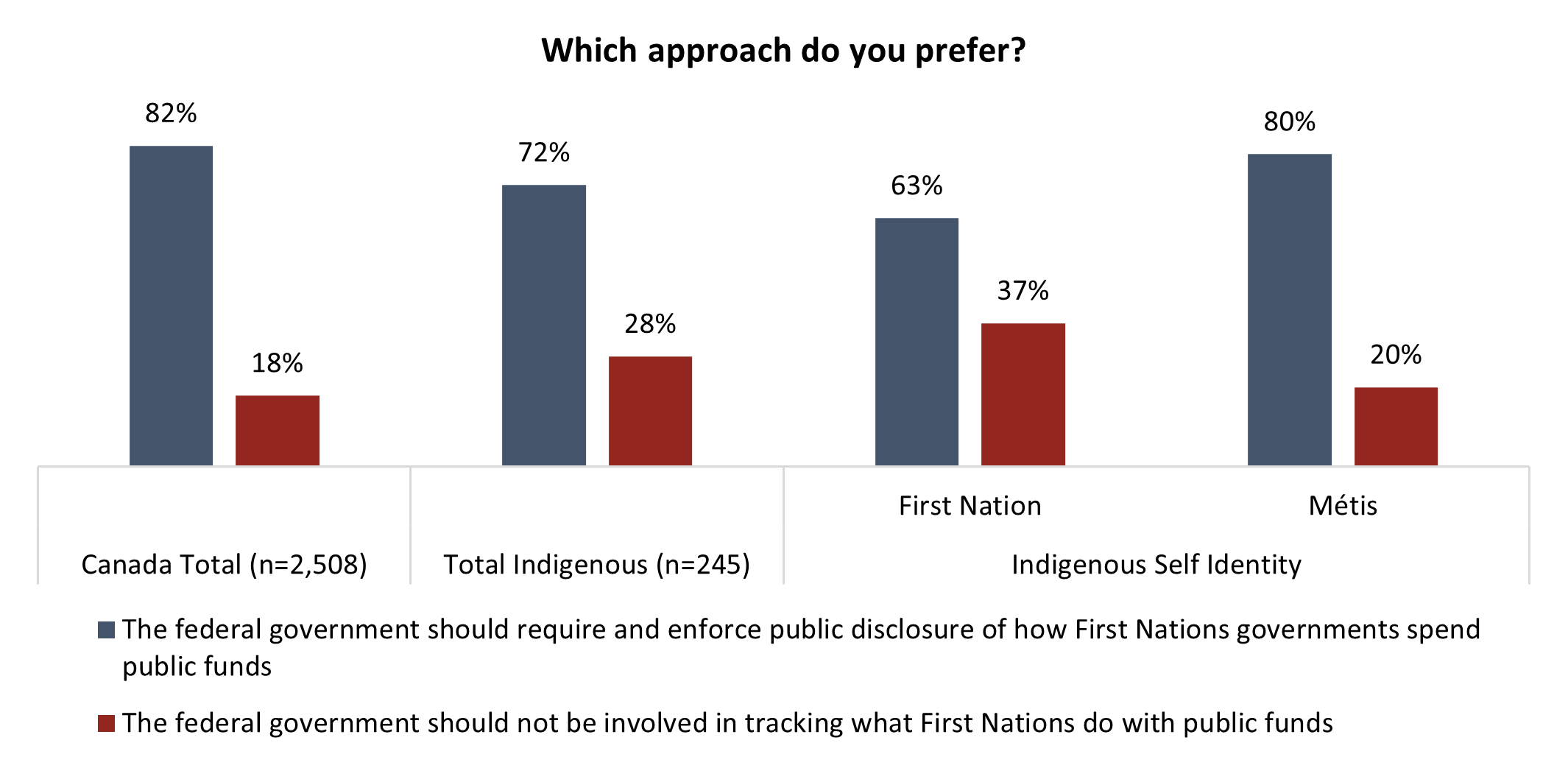 One thing that most, including Indigenous respondents, agree on is that the federal audit requirements under the First Nations Financial Transparency Act that were in effect until 2015 should be re-instated. The federal government stopped enforcing the requirement for First Nations to publish audited financial statements in 2015. Four-in-five (82%) including 63 per cent who identify as First Nation, say this should be brought back.