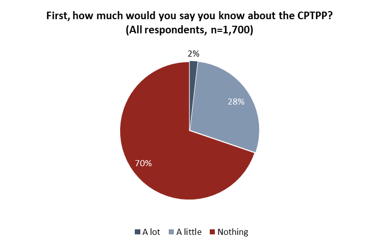 Seven-in-ten (70%) say they know nothing of this trade pact, while three-in-ten (28%) know a little and only a handful (2%) know a lot: