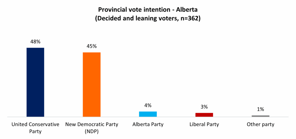 The UCP government is halfway through its mandate, and despite the above criticisms from Albertans, the rival NDP have yet to make much headway in overturning the electoral landscape which landed the UCP its majority government in 2023. Half (48%) of Albertans say they would vote UCP if there were an election today, a three-point edge over the Alberta NDP and leader Naheed Nenshi.