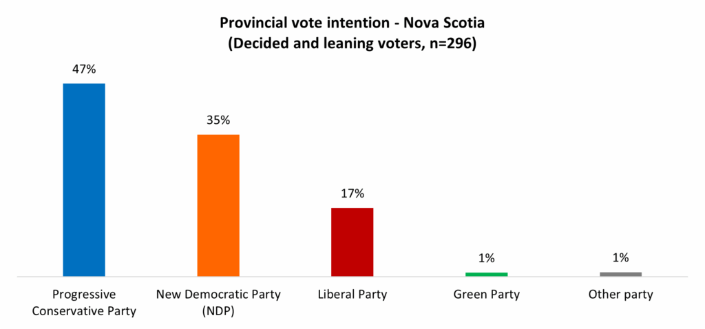 Houston’s PCs continue to lead in vote intention as 2025 flips to 2026. Half (47%) in the province would vote for the incumbents if the election were today: