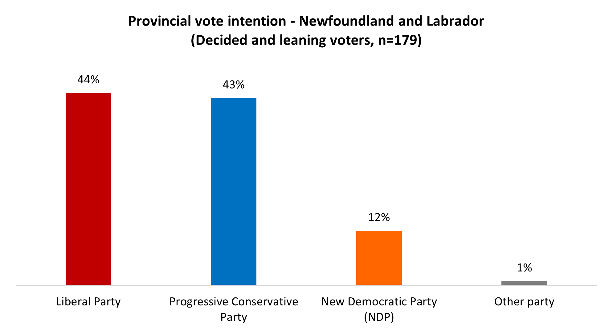 Wakeham and the PCs secured a majority in the fall election with just needed just 44.4 per cent of the popular vote, edging the rival Liberals by less than a percentage point but claiming six more seats. The electoral picture is much the same currently: the PCs and the Liberals are in a statistical tie in vote intention: