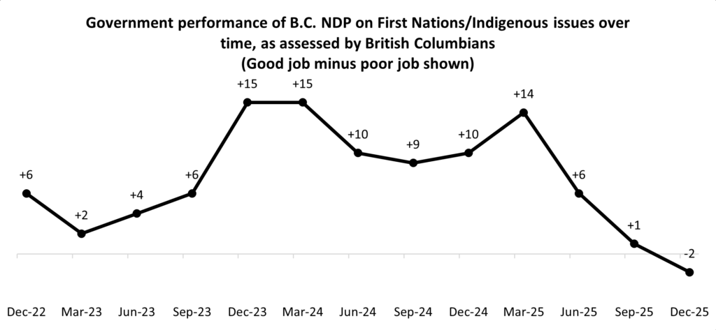 Currently, slightly more than one-in-20 (6%) British Columbians believe First Nations/Indigenous issues is one of the top issues facing the province. Over the past three years, this issue has typically registered in the single digits. However, BC’ers are becoming more critical of Eby’s government on this file.