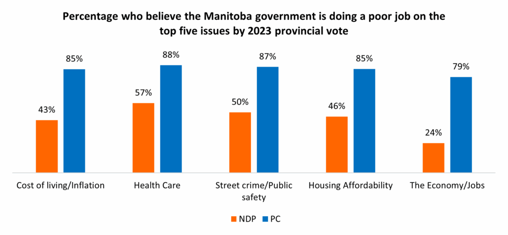 PCPO voters are also highly critical of the government they re-elected to a majority mandate in February. More than two-thirds of those who voted for Ford and his party earlier this year believe the government is handling inflation (68%) and housing affordability (69%) poorly. More than three-in-five (63%) of those PC voters believe the government is mishandling the health care file.