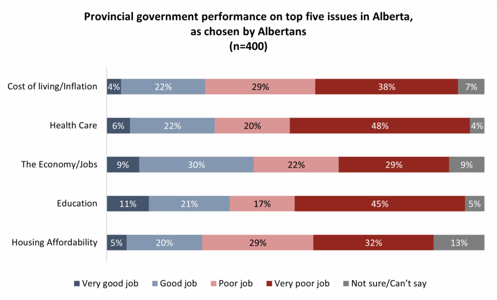 The high cost of living is a top issue chosen by Albertans, just as it is in every other province across the country. Most in the province (67%) believe Premier Danielle Smith and the UCP government has handled that issue poorly.
