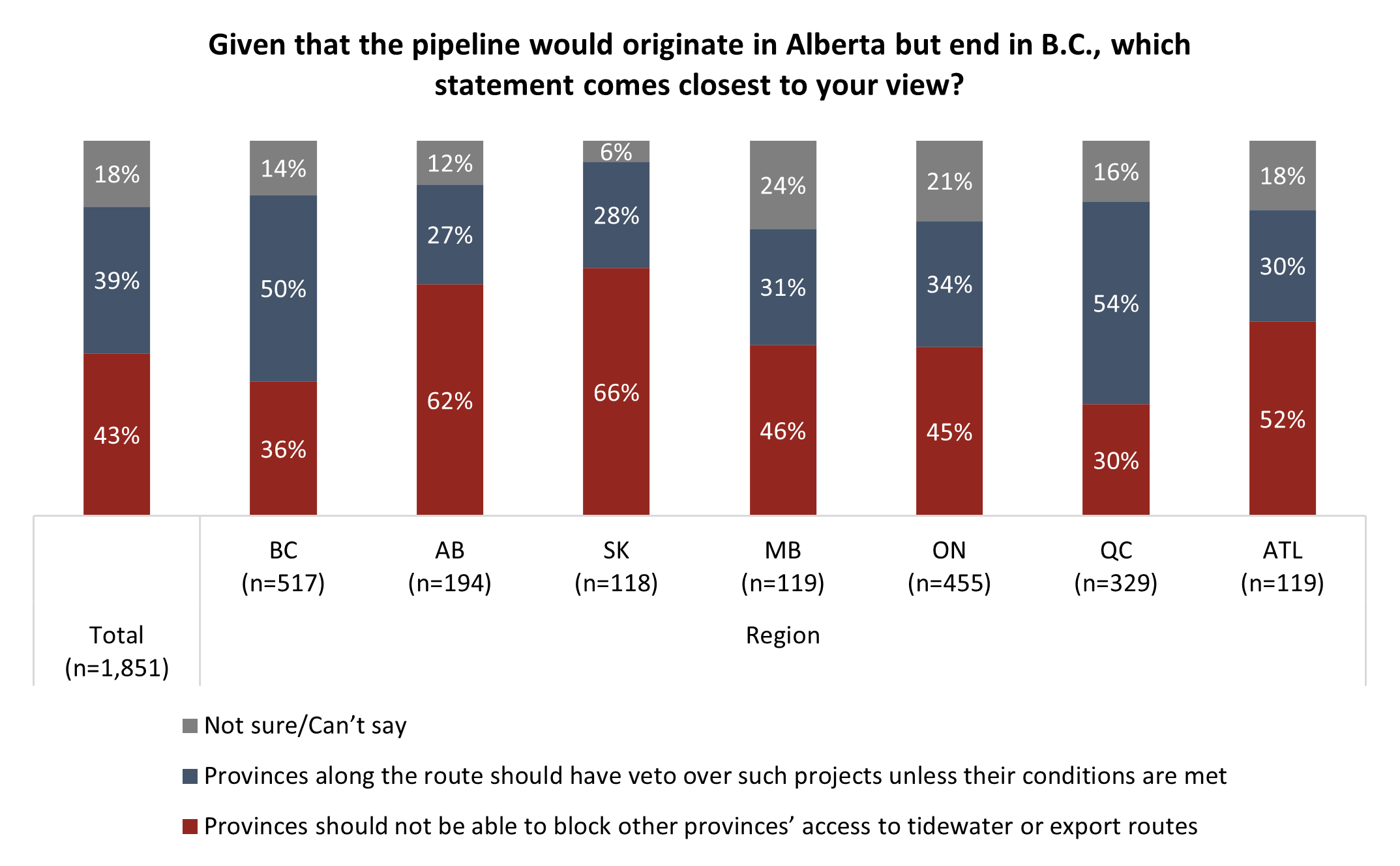 Those in B.C. (50% veto) and Alberta (62% no veto) have vastly differing views on the matter: